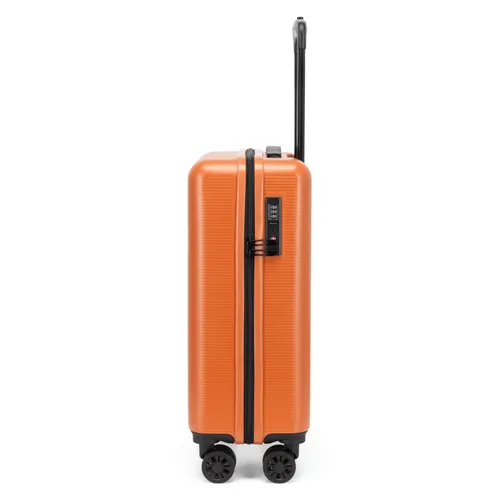 - Slagtåligt skal: Väskan är tillverkad av ABS-plast, ett material som kombinerar låg vikt med hög hållbarhet. Den unika förstyvade designen på skalet bidrar till dess motståndskraft mot stötar och tryck som uppstår under incheckning och vid bagagehantering.