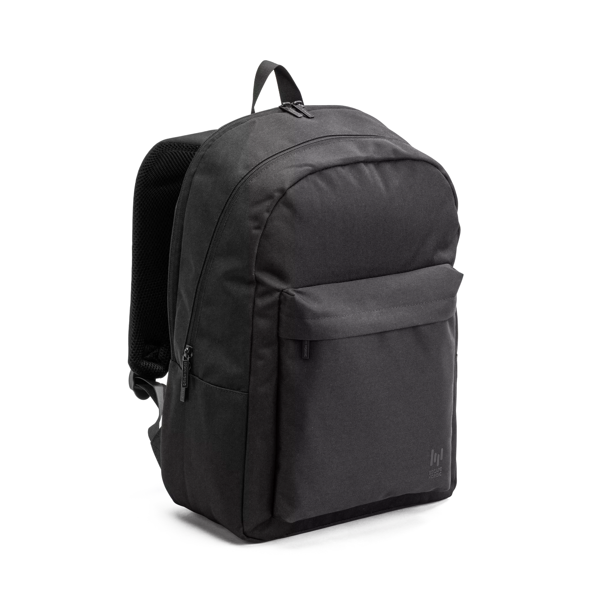 Rymlig och sportig ryggsäck i vattenavvisande 900D polyester, från Escape Nordic. Dubbla blixtlåsförsedda huvudfack. Det nättare, bakre av dessa har ett öppet vadderat fack för bärbar dator, det rymliga, främre har ett rejält blixtlåsfack. Vadderade, 7 cm breda reglerbara axelremmar. Vadderad och ventilerad ryggplatta, med textilband, för att fästa på en resväskas teleskophandtag. Enkelt bärhandtag på toppen.