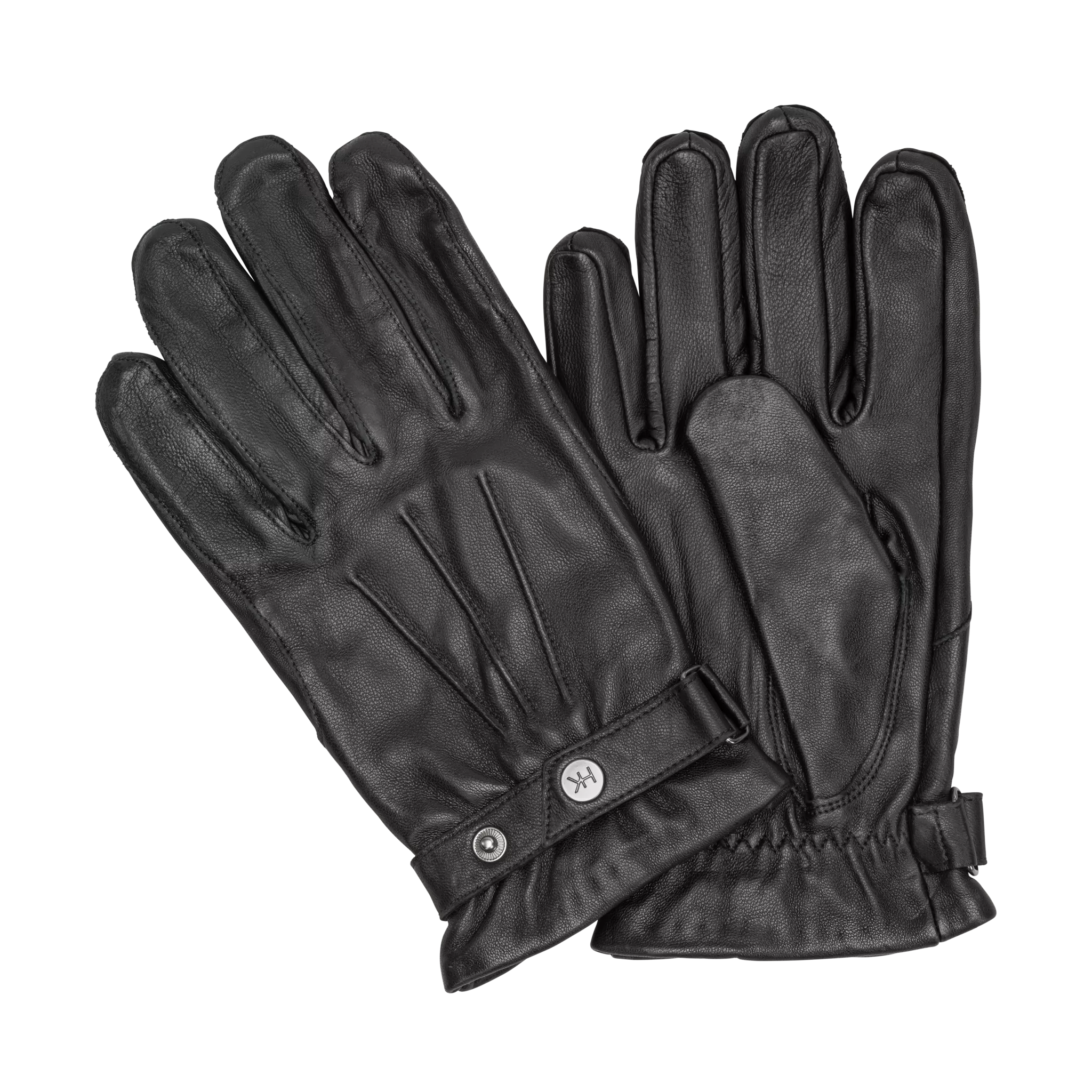 Eleganta herrhandskar med sportig touch i smidig lammnappa. Modellen är lätt formsydd med förböjda fingrar och har en justerbar slejf runt handleden. Fodrade med mjukt stickat yllefoder.