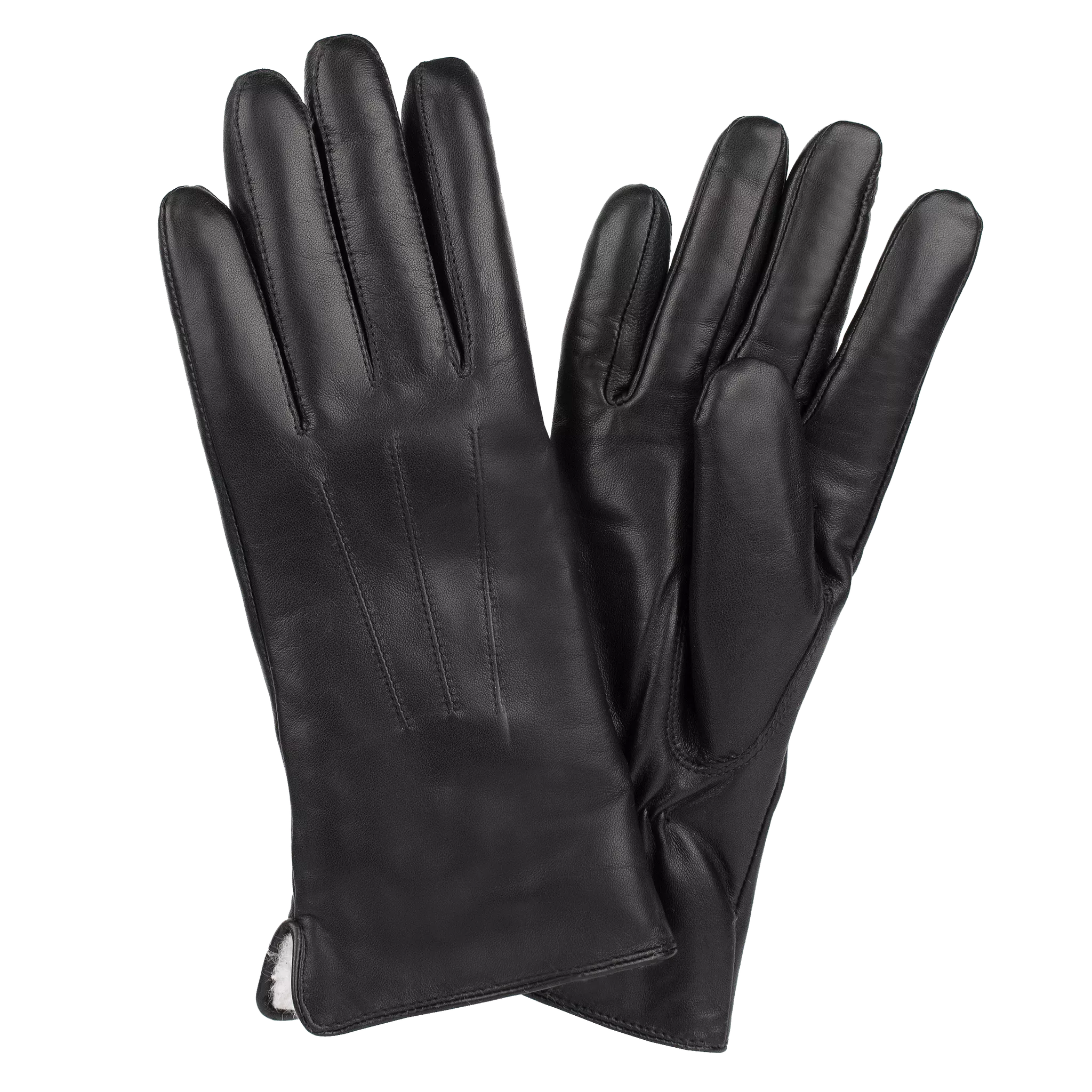 Mjuka och klassiska damhandskar av smidig fårnappa. Dekorsöm på handryggen och slits i sidan. Fodrade med mjuk pälsimitation av polyester.