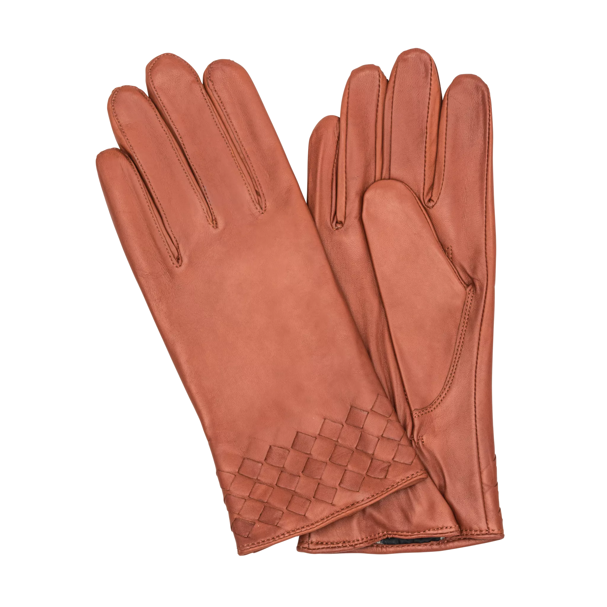 Damhandskar i mjuk och följsam lammnappa. Denna modell har ett trendigt vävt mönster på skaftet. Fodrad med mjukt stickat yllefoder.