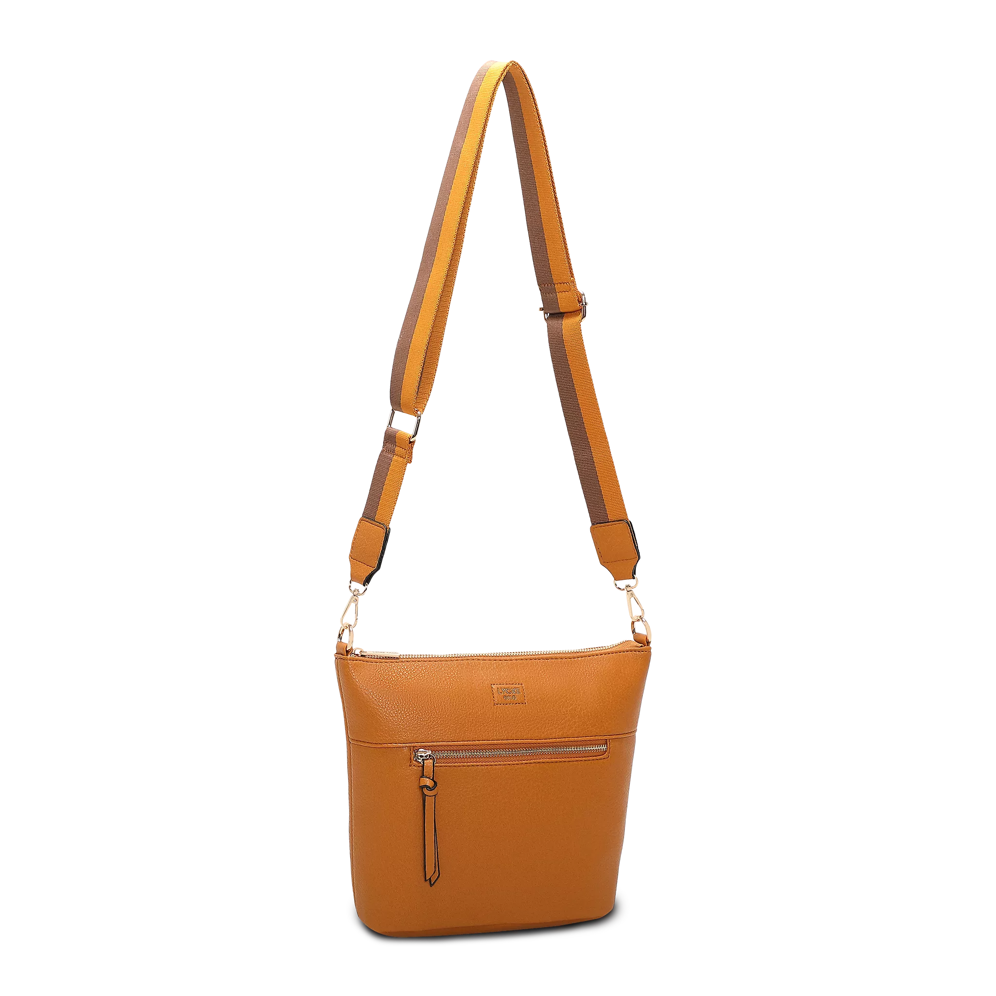 Nätt crossover i trendig hinkmodell från Lycke Oslo, tillverkad av mjuk skinnimitation. Stadig, bred botten gör väskan rymlig. Läckert randig axelrem, som enkelt justeras till lämplig längd.