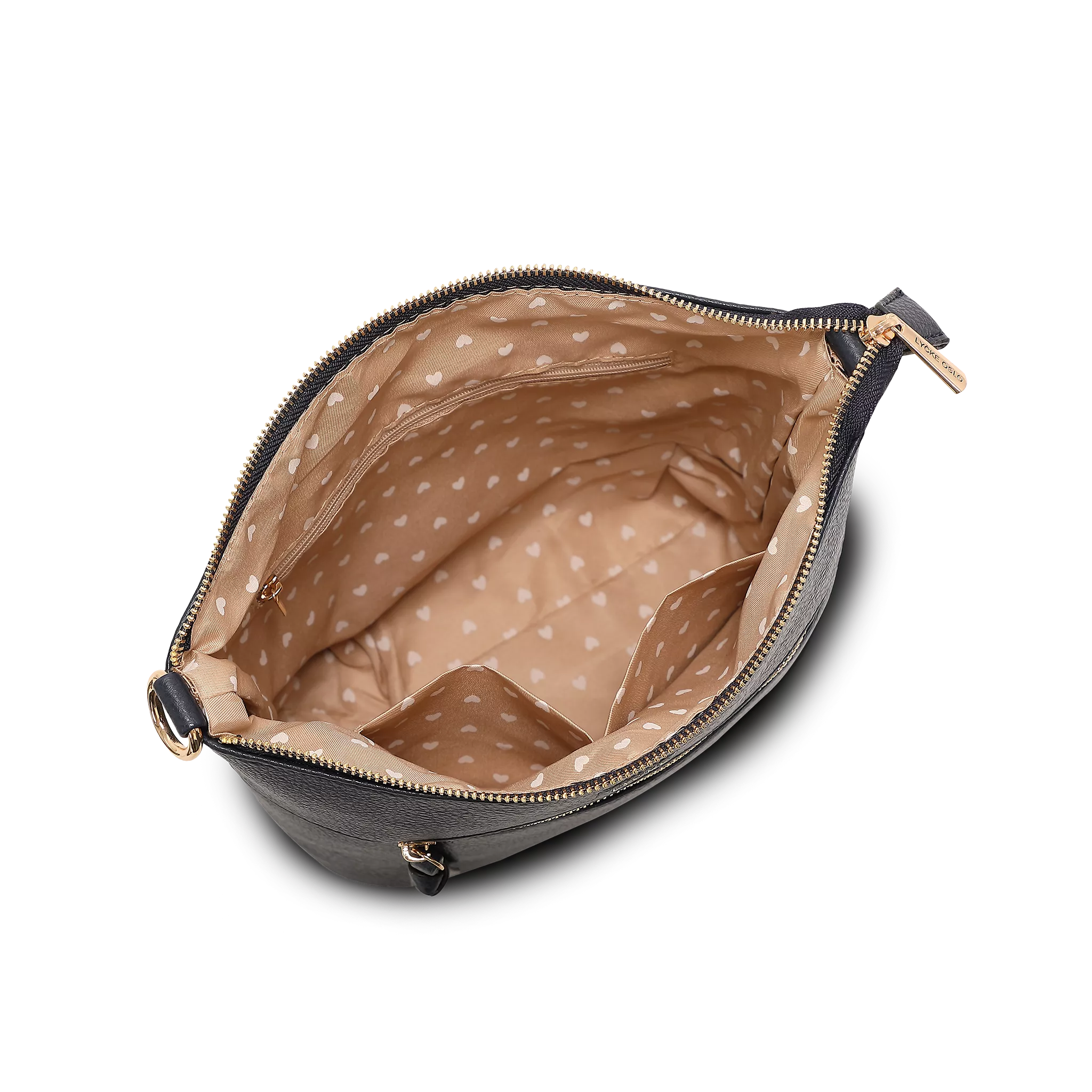 • Inredning: ett blixtlåsförsett fack och två öppna fack