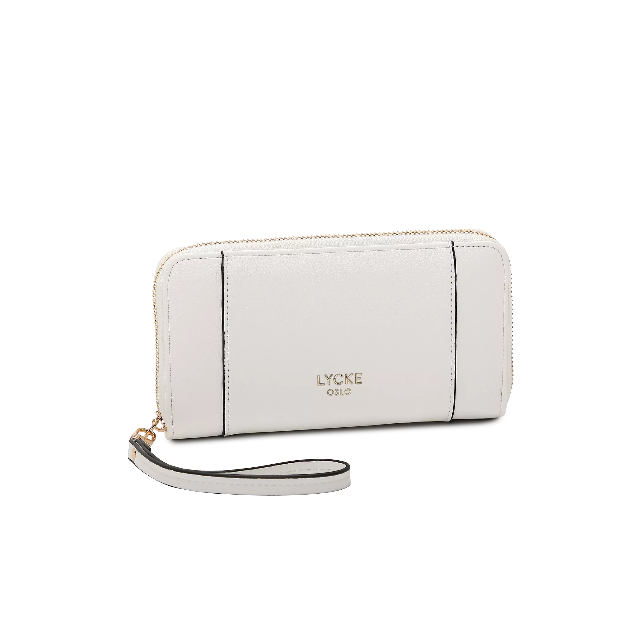 Stilig plånbok i lite större storlek som du både får plats med i den lite större handväskan och som du kan bära i handen med hjälp av handledsremmen. Den är tillverkad av mjuk skinnimitation från Lycke Oslo. Inuti har den två avdelningar vilket ger tre mittfack så du enkelt håller isär dina kontanter och kvitton. Du har ett blixtlåsförsett fack i mitten till mynt, åtta kortfack och två fack av lite längre storlek. På baksidan har du också ett blixtlåsförsett fack på 14 cm. Känn dig säker med blixtlåset som omsluter plånboken och ger en snygg design!