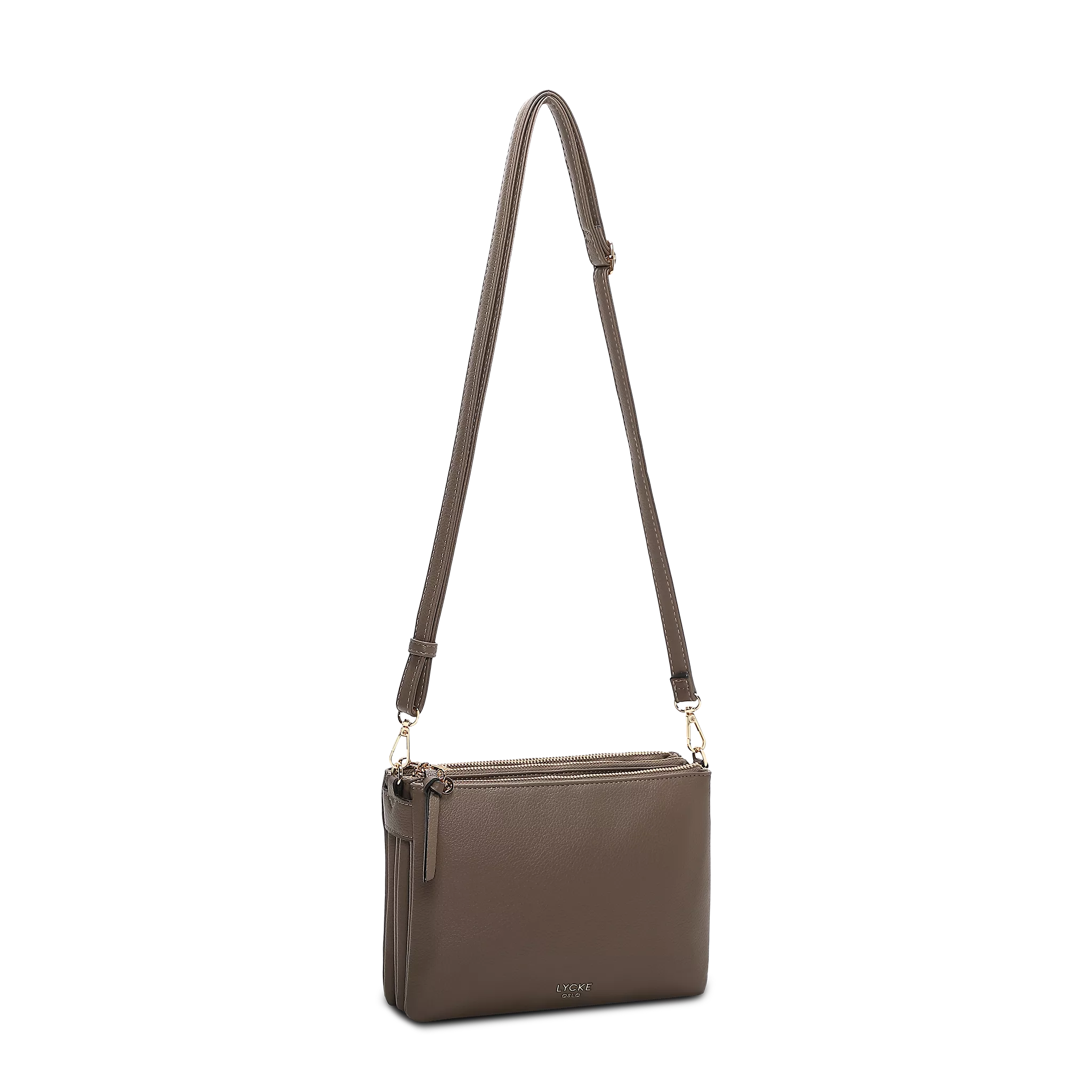 Läcker axelväska i crossovermodell med exklusiv look från Lycke Oslo. Väskan är tillverkad av mjuk skinnimitation med struktur. Väskan har tre blixtlåsförsedda huvudfack, vilket ger dig möjlighet att organisera dina tillhörigheter.