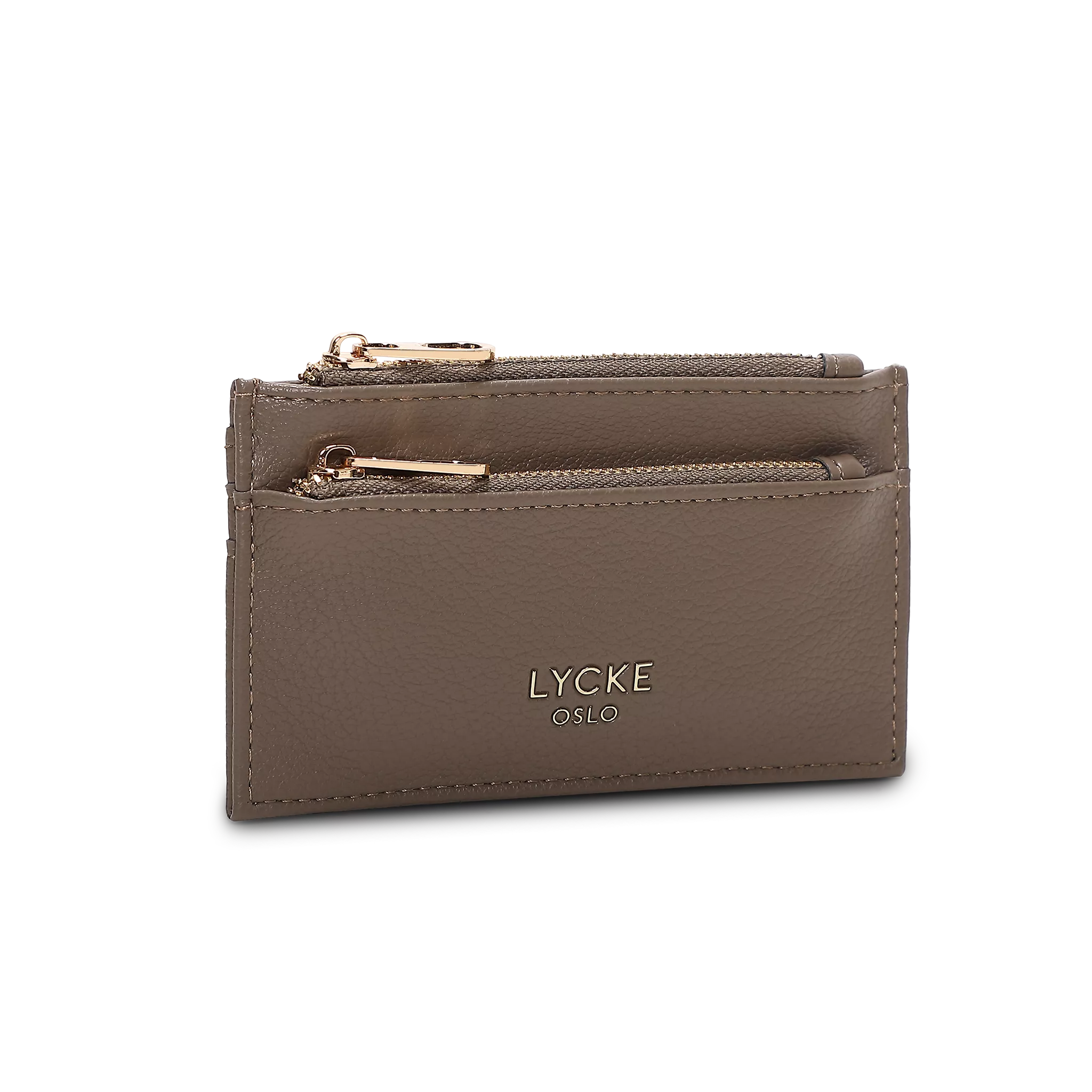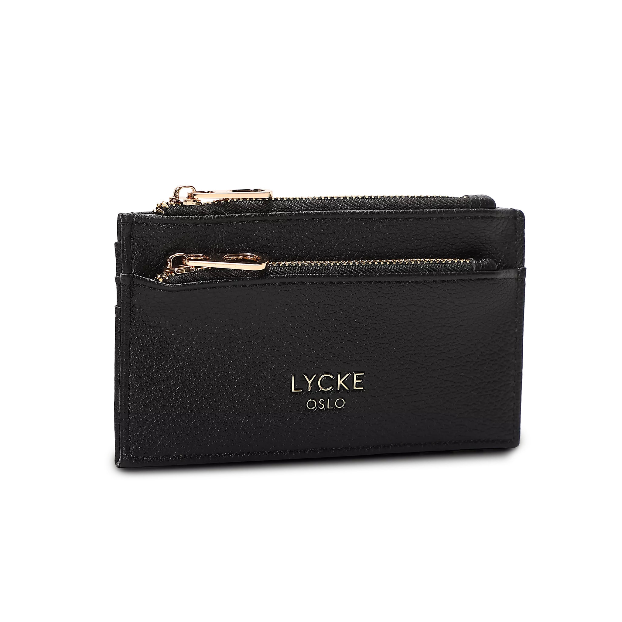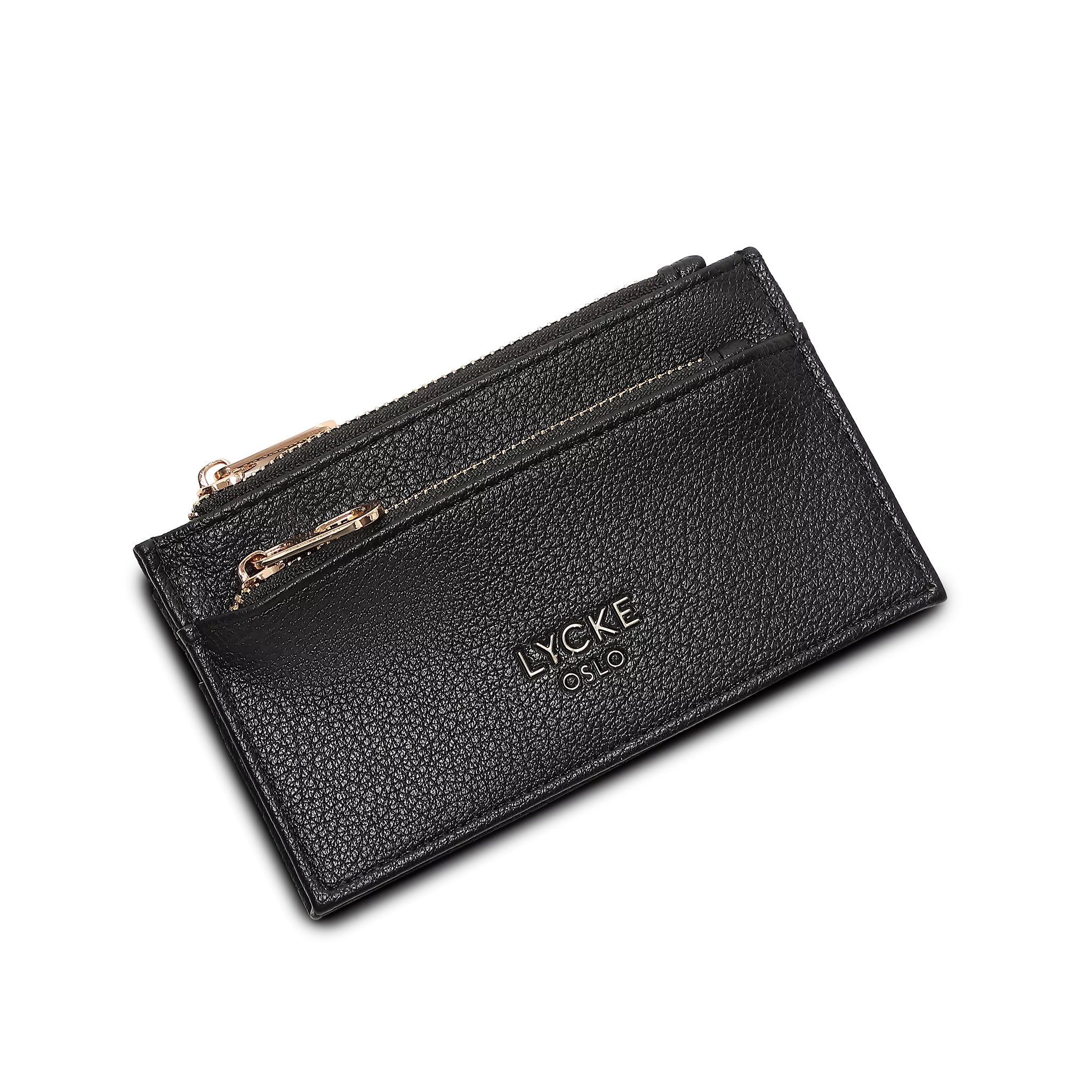 Smidigt kortfodral/miniplånbok, tillverkad av mjuk skinnimitation med struktur, från Lycke Oslo. Myntfack med blixtlås och ett huvudfack med blixtlås där det även finns nyckelring. Den är så liten och smidig att du lätt får plats med kortfodralet både i byxfickan och i din lilla väska.
