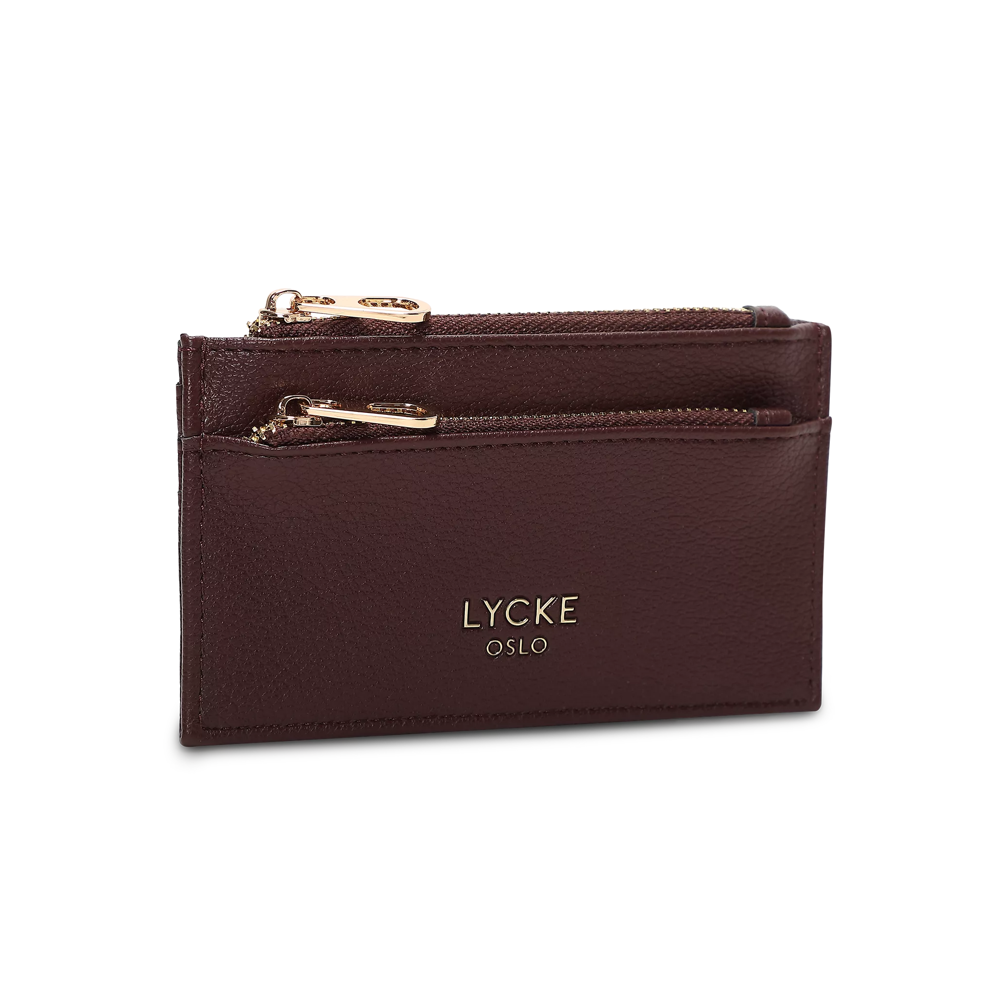 Smidigt kortfodral/miniplånbok, tillverkad av mjuk skinnimitation med struktur, från Lycke Oslo. Myntfack med blixtlås och ett huvudfack med blixtlås där det även finns nyckelring. Den är så liten och smidig att du lätt får plats med kortfodralet både i byxfickan och i din lilla väska.