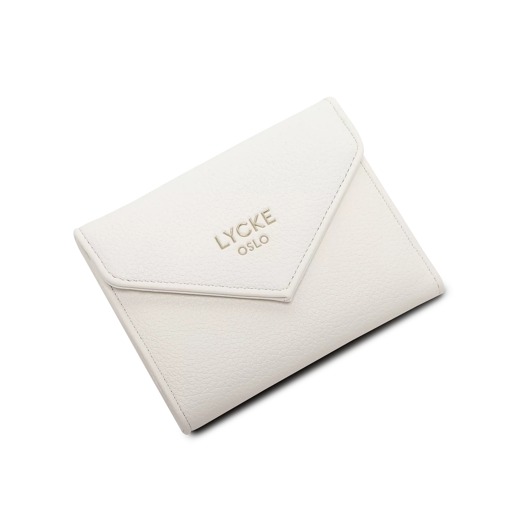 Liten smidig plånbok tillverkad av mjuk skinnimitation från Lycke Oslo. Inuti har den ett långt öppet fack för sedlar, ett mindre blixtlåsack och plats för åtta kort. Plånboken stängs med tryckknapp.