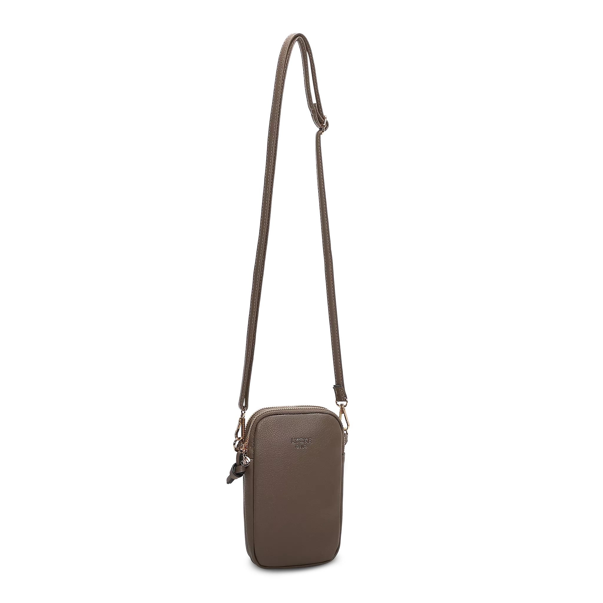 Stilig mobilväska av större storlek i stilren design, tillverkad av fantastiskt mjuk skinnimitation från Lycke Oslo. Väskan har två fack med blixtlås, du kan enkelt hålla isär din mobil, nycklar och kortfodral. Mobilväskans storlek gör att den passar de flesta telefoner även med plånboksfodral. Minimalistiska detaljer i guld för ett klassiskt utseende.