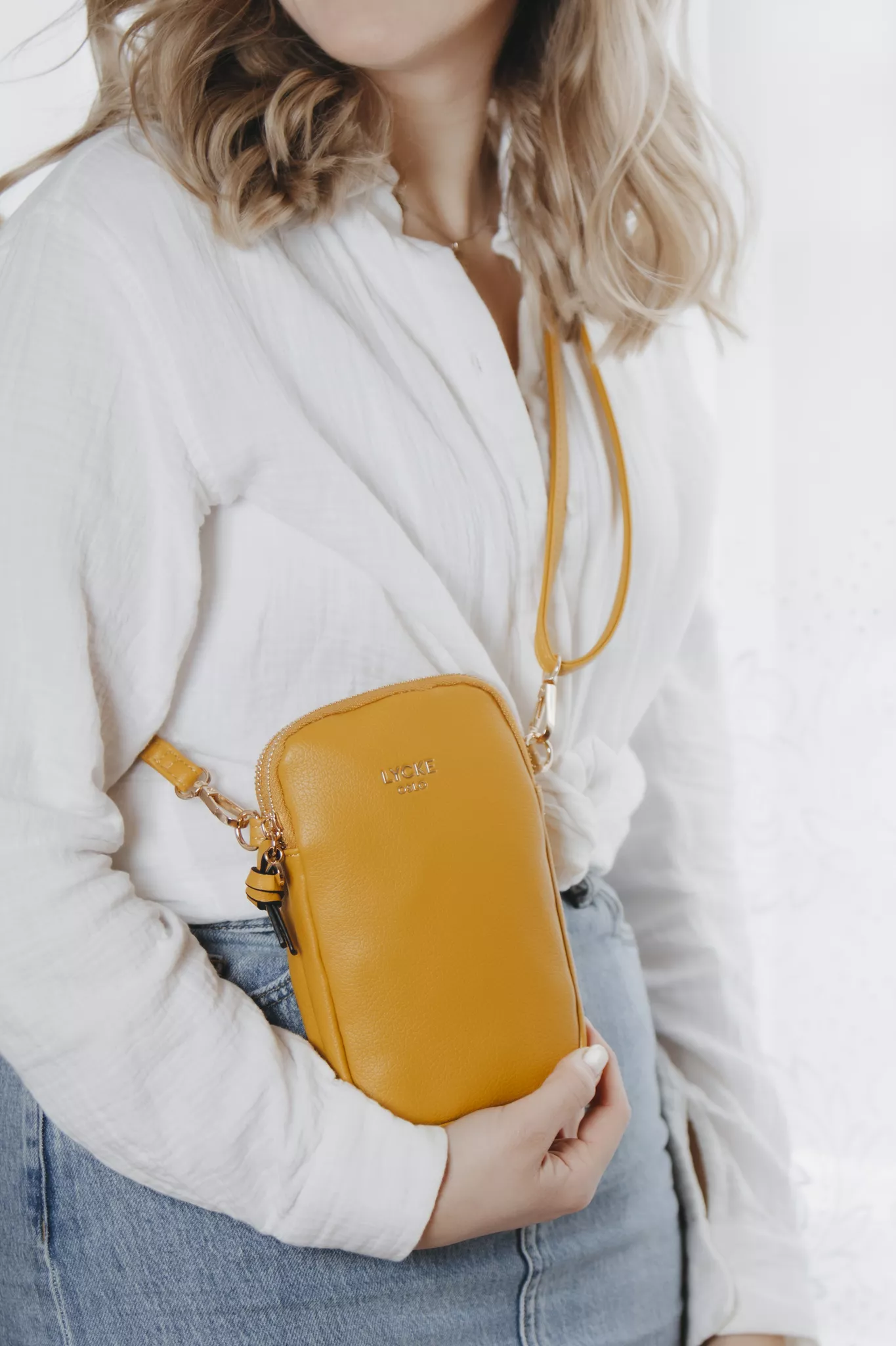 Stilig mobilväska av större storlek i stilren design, tillverkad av fantastiskt mjuk skinnimitation från Lycke Oslo. Väskan har två fack med blixtlås, du kan enkelt hålla isär din mobil, nycklar och kortfodral. Mobilväskans storlek gör att den passar de flesta telefoner även med plånboksfodral. Minimalistiska detaljer i guld för ett klassiskt utseende.