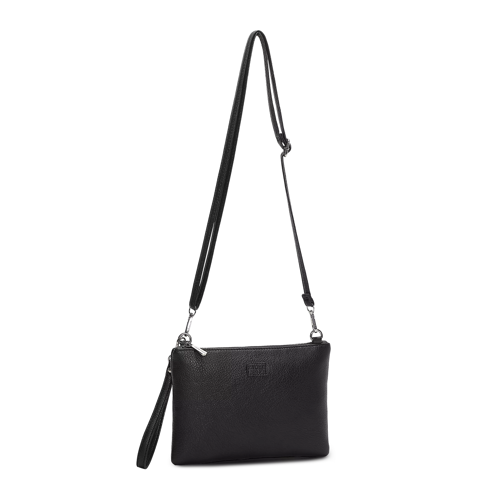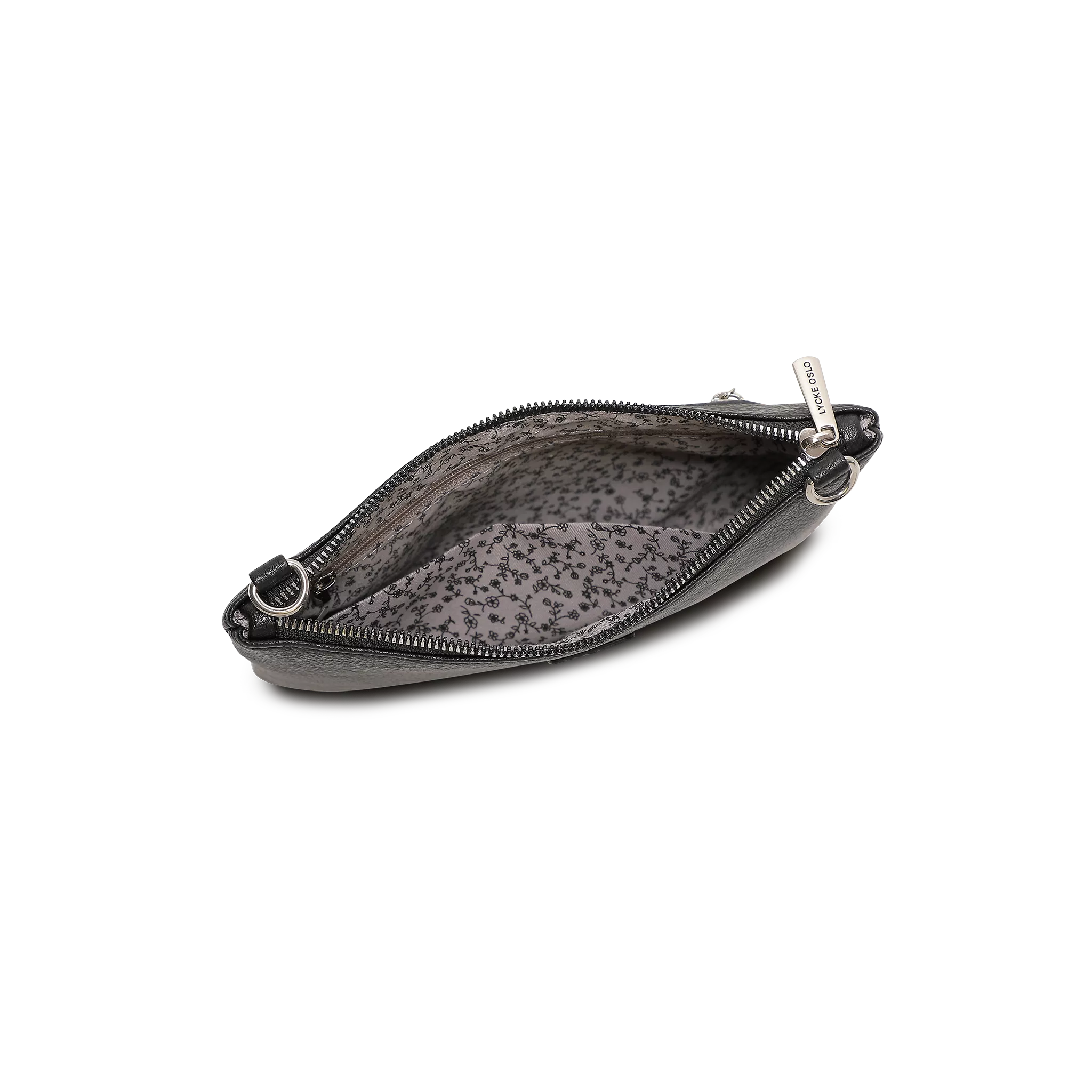 Klassiskt enkel och stilig clutch med avtagbar axelrem tillverkad av skinnimitation med härlig känsla, från Lycke Oslo. Rymmer dina viktigaste ting, till vardag och fest!