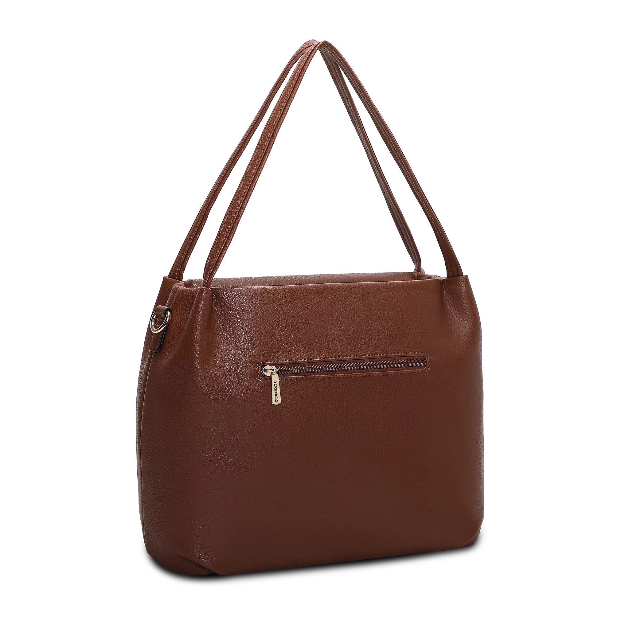 Fräsch och rymlig handväska i mjuk skinnimation från Lycke Oslo. Väskan är rundad i modellen, huvudfacket stängs med blixtlås. Den kan bäras i handen, på armen, på axeln eller crossbody. Den har både två fasta handtag och en avtagbar, steglöst justerbar axelrem.