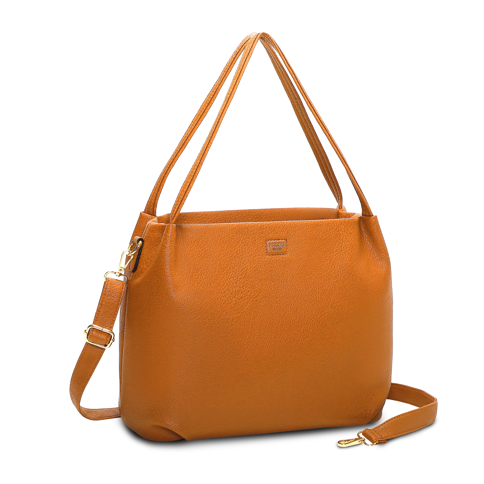 Fräsch och rymlig handväska i mjuk skinnimation från Lycke Oslo. Väskan är rundad i modellen, huvudfacket stängs med blixtlås. Den kan bäras i handen, på armen, på axeln eller crossbody. Den har både två fasta handtag och en avtagbar, steglöst justerbar axelrem.