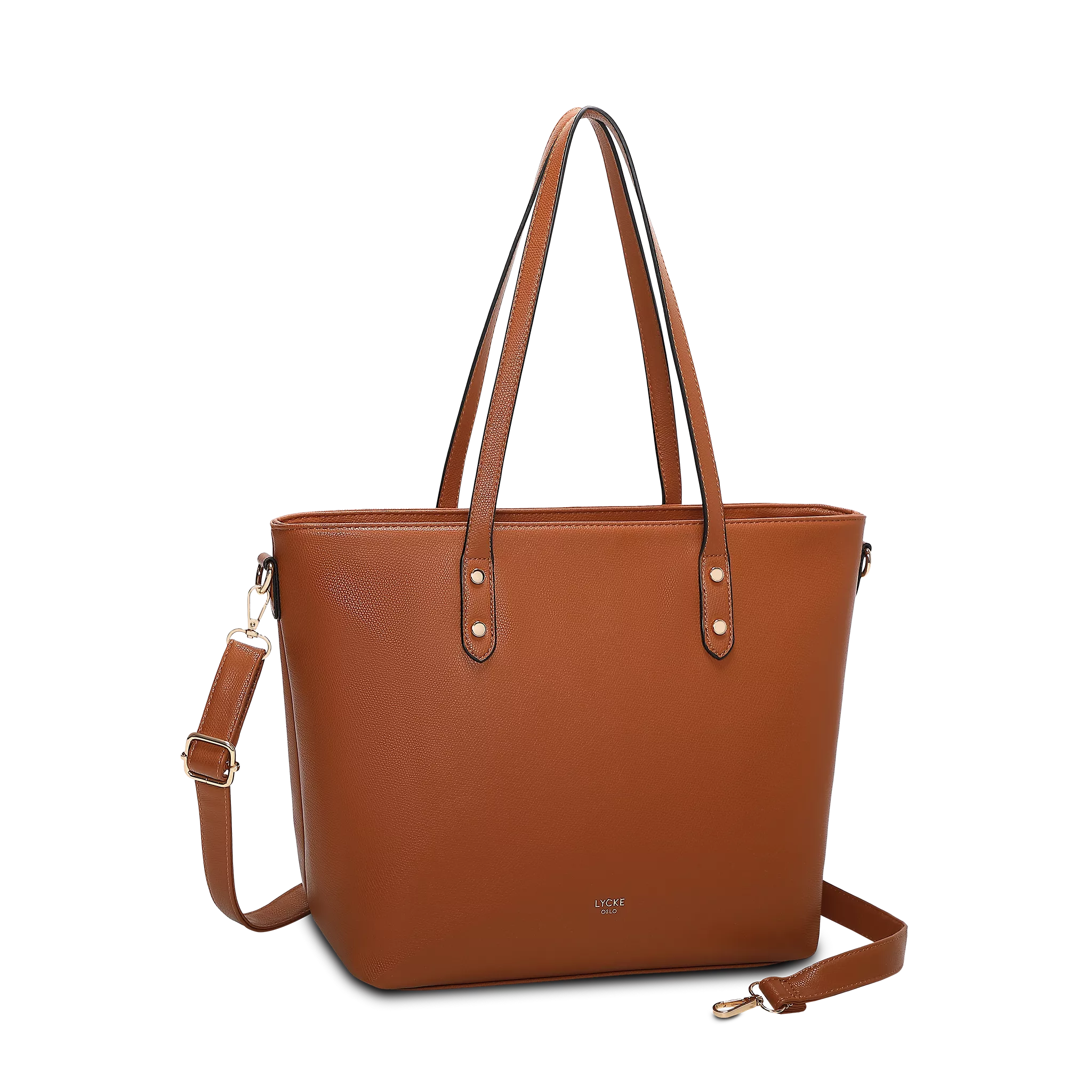 Stor, rymlig och klassisk axelväska med fantastisk inredning från Lycke Oslo, tillverkad av mjuk skinnimitation med tvåtonseffekt. En funktionell och lättöverskådlig väska med tre huvudfack, för dig som vill ha god översikt på dina tillhörigheter. Super vardagsväska!
