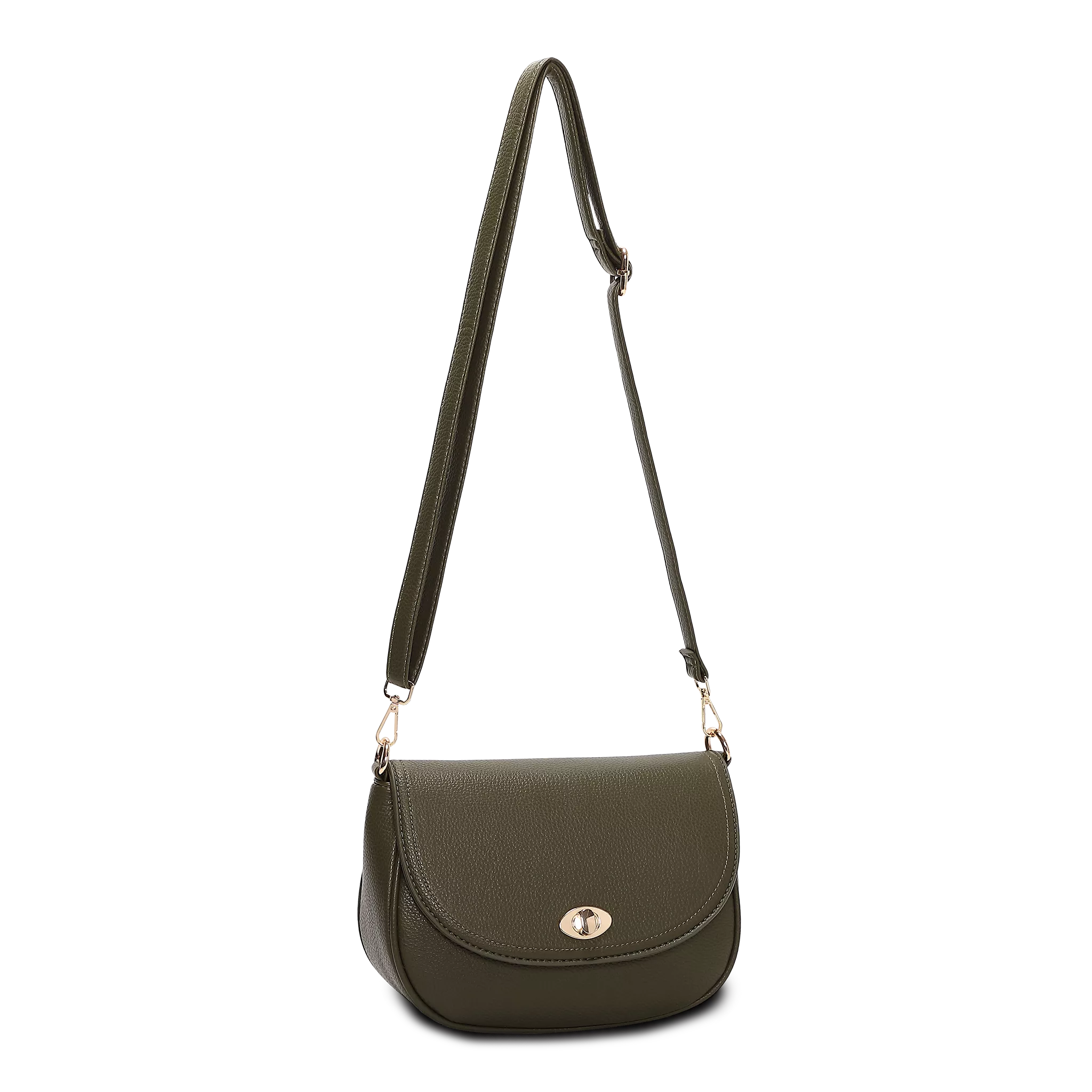 Trendigt läcker klaffväska i saddlebagmodell med läckra gulddetaljer, tillverkad av härlig skinnimitation, från Lycke Oslo. Klaffen stängs med magnetlås och huvudfacket är blixtlåsförsett för din säkerhet.