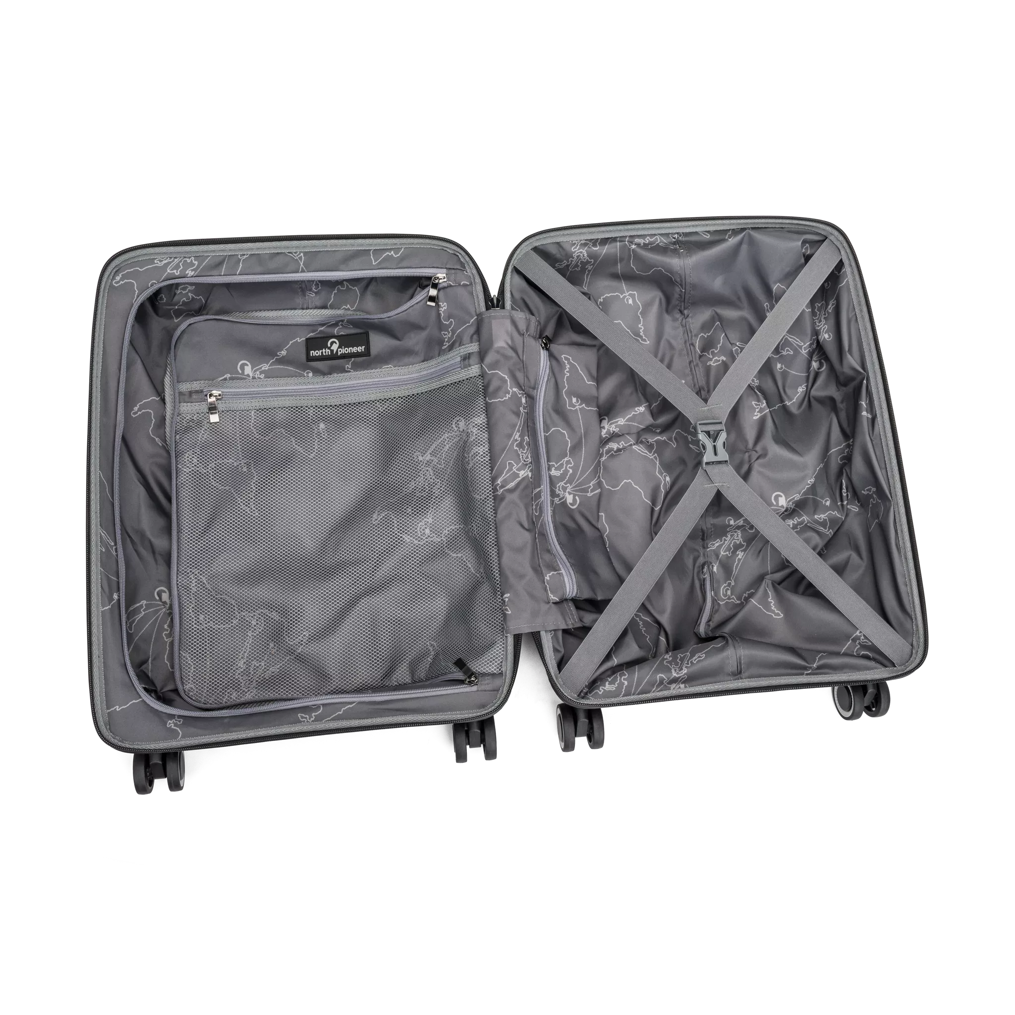 Upptäck North Pioneers exklusiva OSL-serie, inspirerad av norska glaciärer och skandinavisk design. Denna Limited Edition-kabinväska i svart och guld är inte bara ett stilfullt resesällskap – den är också extremt lätt, robust och funktionell. Tillverkad i slitstark polypropylen klarar väskan tuffa resor samtidigt som den håller vikten låg. Fyra 360° snurrande hjul och ett ergonomiskt teleskophandtag gör den enkel att rulla i alla riktningar, även i trånga utrymmen. Ett TSA-kodlås och en rejäl dragkedja skyddar dina tillhörigheter under hela resan. Insidan är smart utformad med blixtlåsfickor och ett elastiskt kryssband som håller ordning på packningen. North Pioneer Oslo Black/Gold är det perfekta valet för dig som söker en kabinväska med premiumkänsla, smarta funktioner och nordisk elegans.