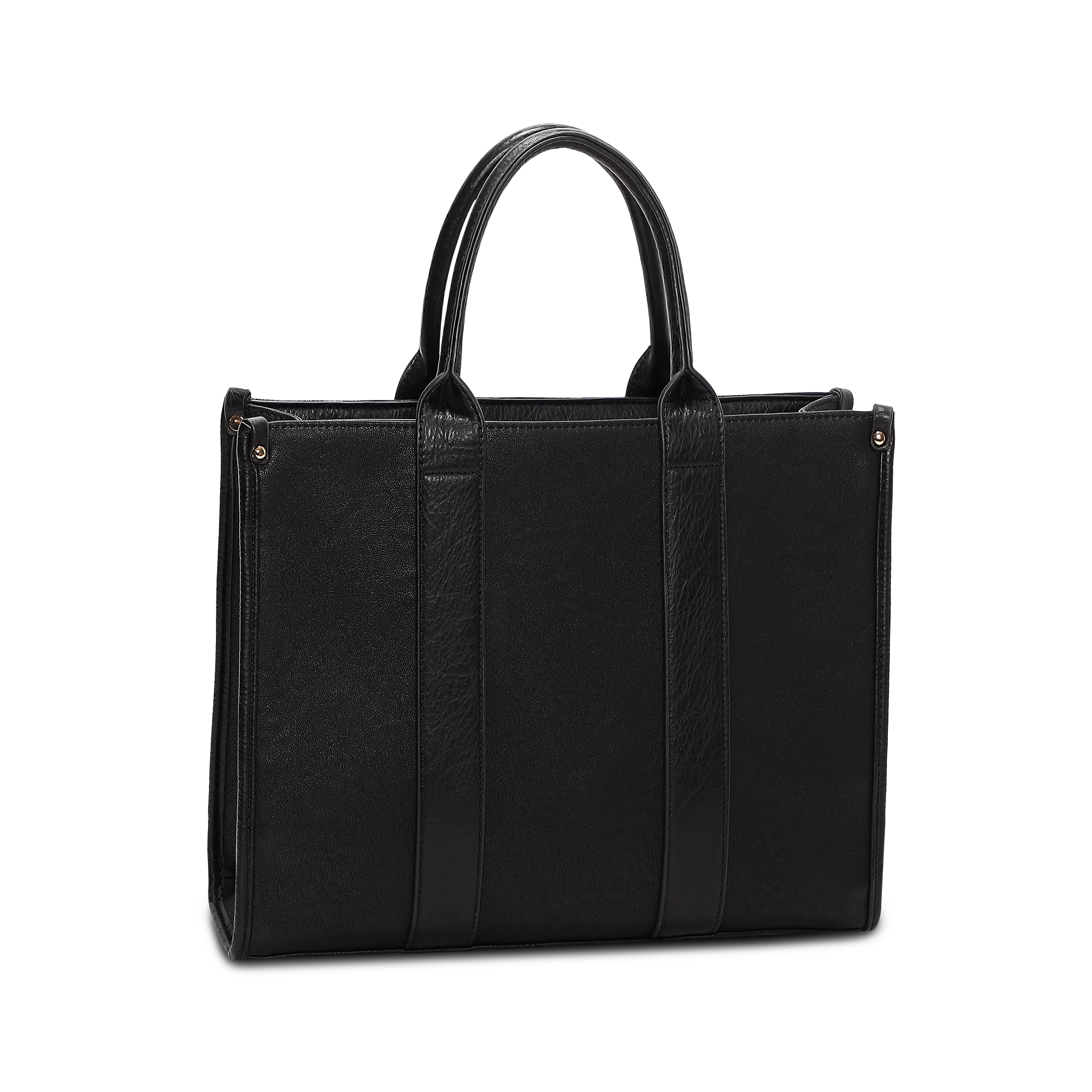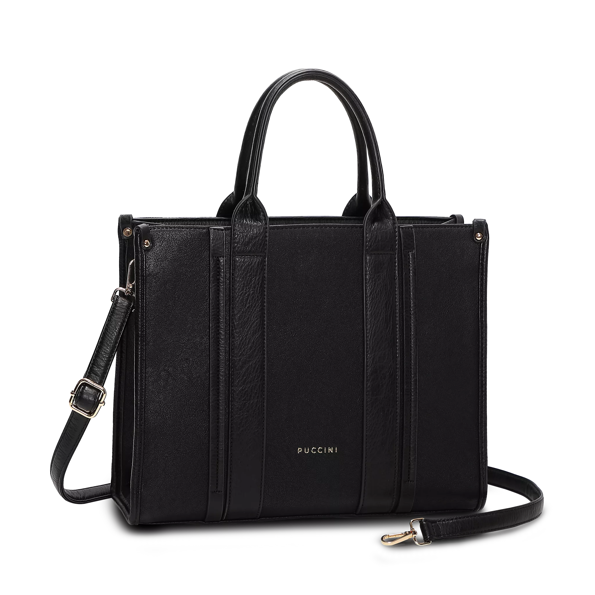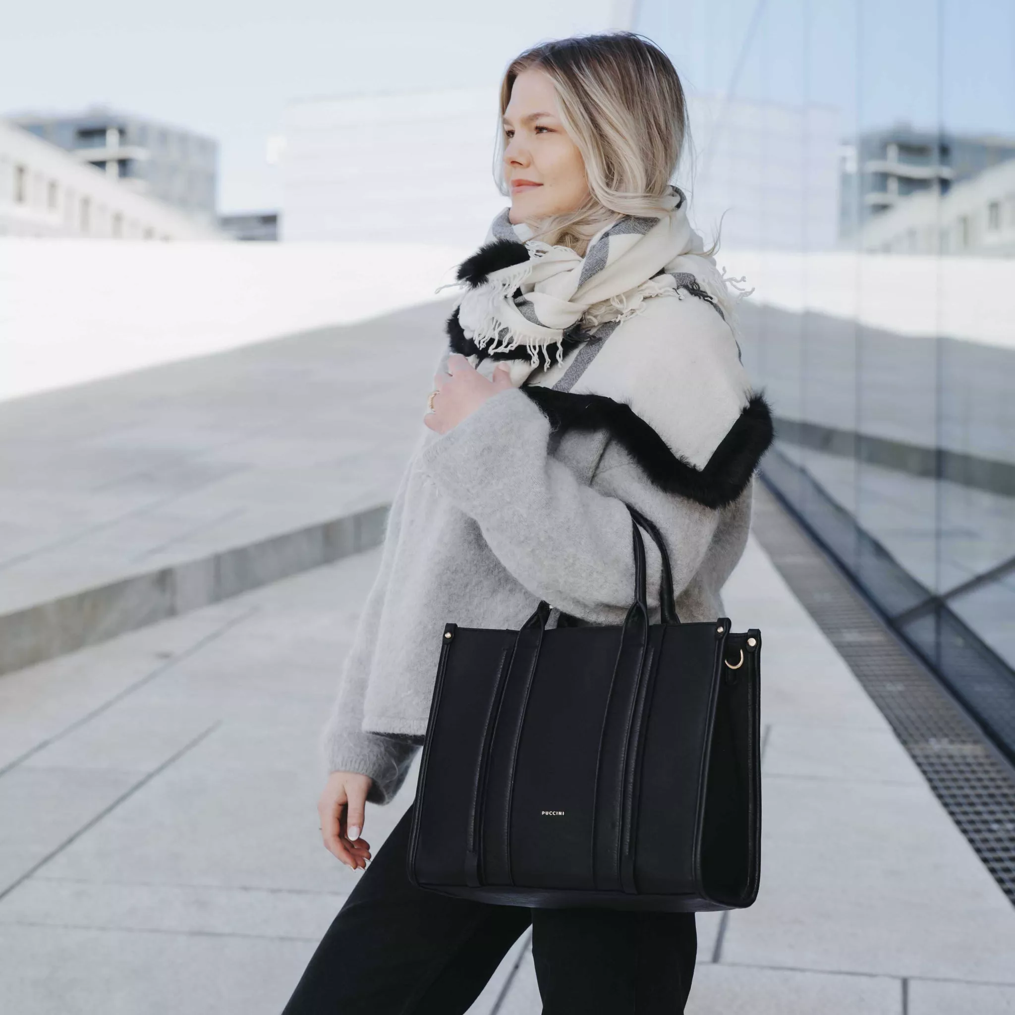 Trendig, generöst tilltagen handväska i kassemodell tillverkad av härligt mjuk skinnimitation, från Puccini. Rejäl botten, väskan står stabilt när du ställer den ifrån dig. Cool och rymlig väska, med läckra ton-i-ton detaljer.