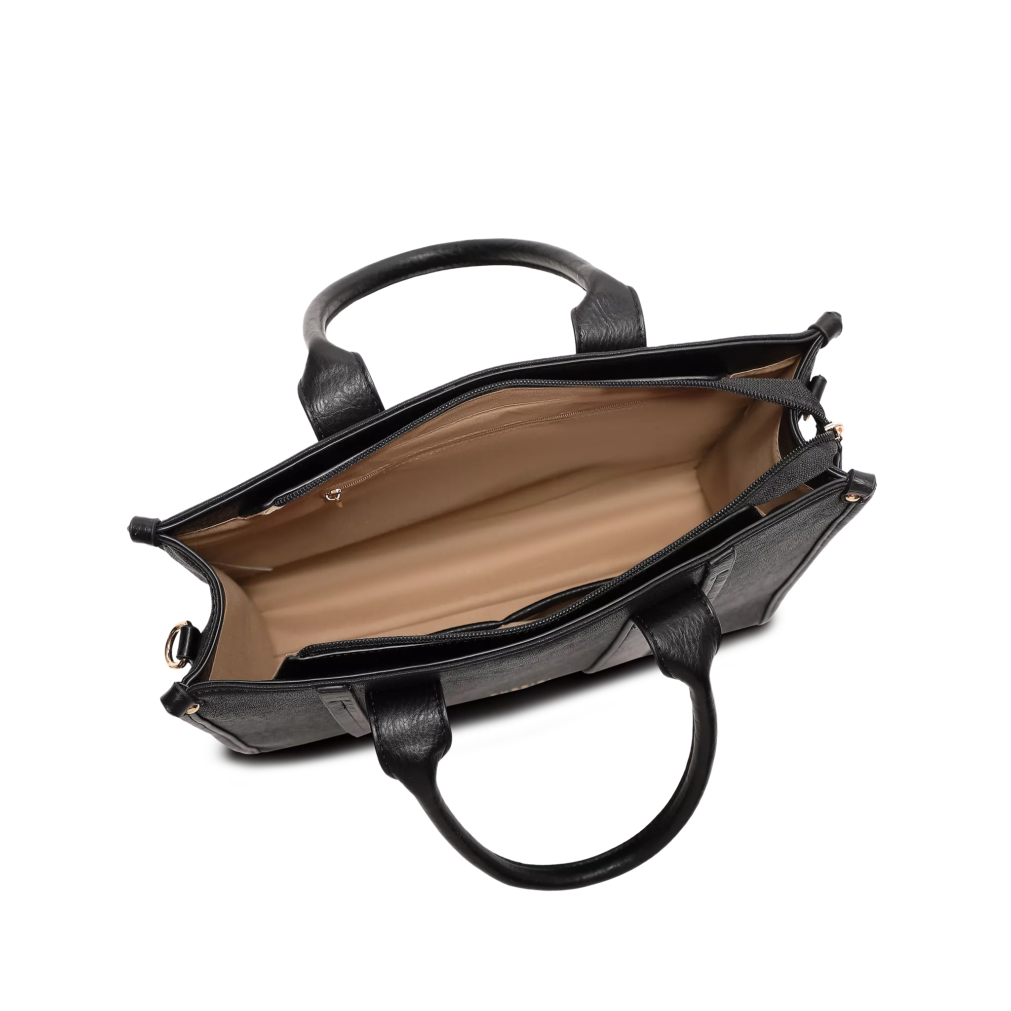 • Inredning: ett blixtlåsförsett fack och två öppna fack