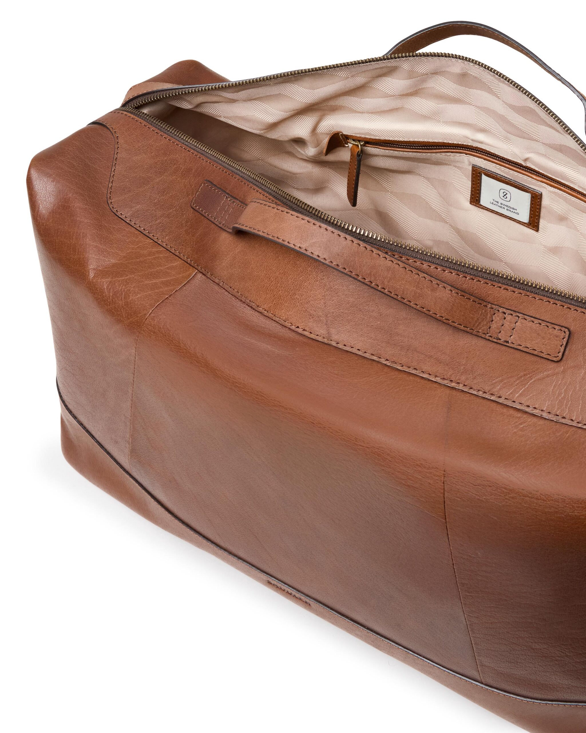 - Dragkedja i brassfärgad metall för Mid Brown och D. Brown, Silverfärgade på Black: Löper hela vägen ut till sidorna, vilket gör att väskan kan öppnas rejält för smidig packning och uppackning.