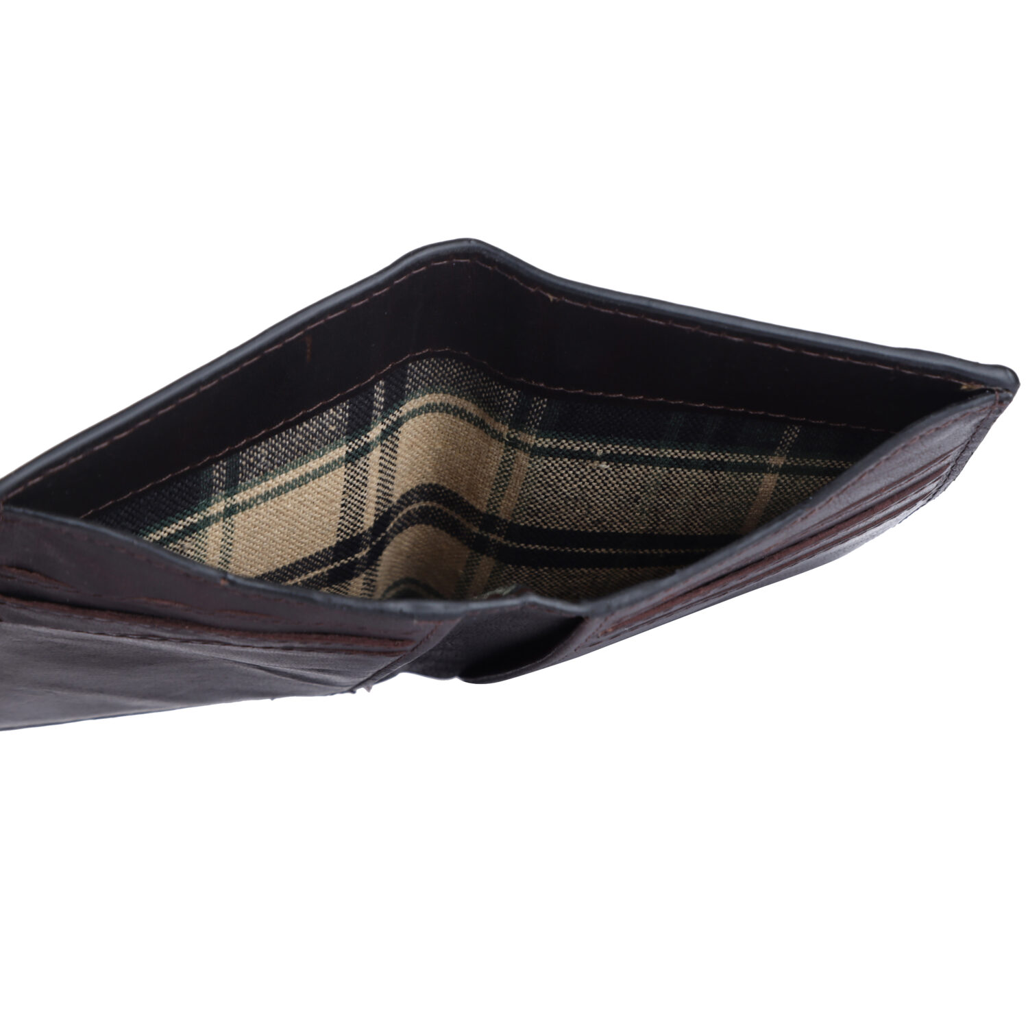Exklusiv Inredning: Insidan är fodrad med mjukt getskinn, vilket inte bara tillför en extra nivå av lyx utan också skyddar dina kort och mynt med sin mjukhet.