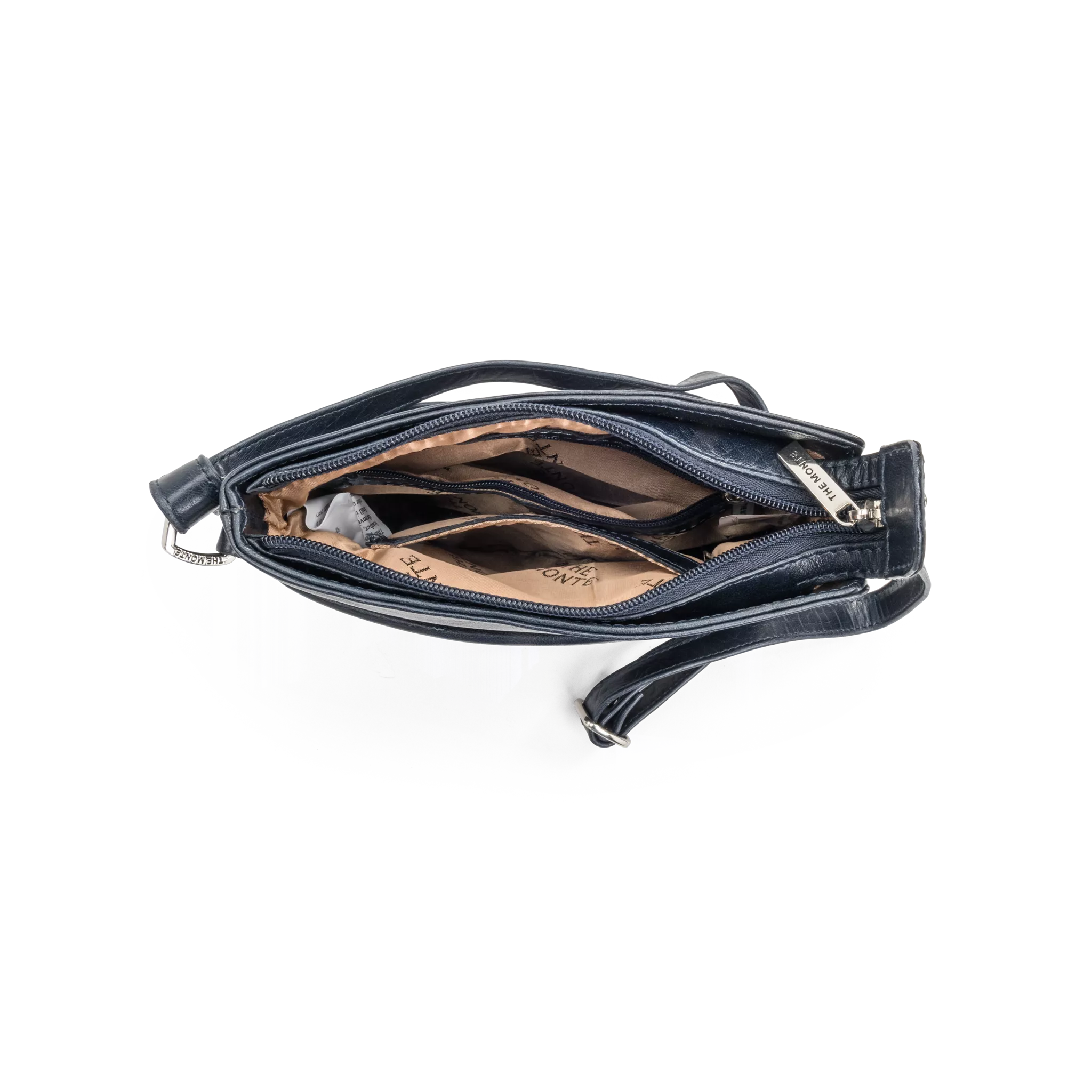Ge din look ett sofistikerat lyft med denna stilrena handväska i mjukt buffelkalvskinn från The Monte. Skinnets naturliga struktur ger väskan en exklusiv känsla, medan de silverfärgade metalldetaljerna och diskret logotyp på framsidan tillför en modern elegans.