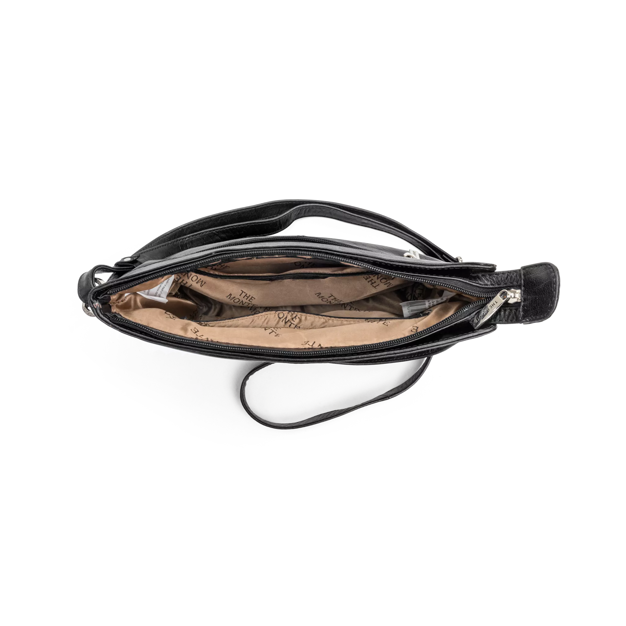 Rymlig axelremsväska i mjukt buffelkalvskinn från The Monte – stil med vardagsfunktion. Upptäck den perfekta balansen mellan elegans och funktion med denna rymliga handväska.