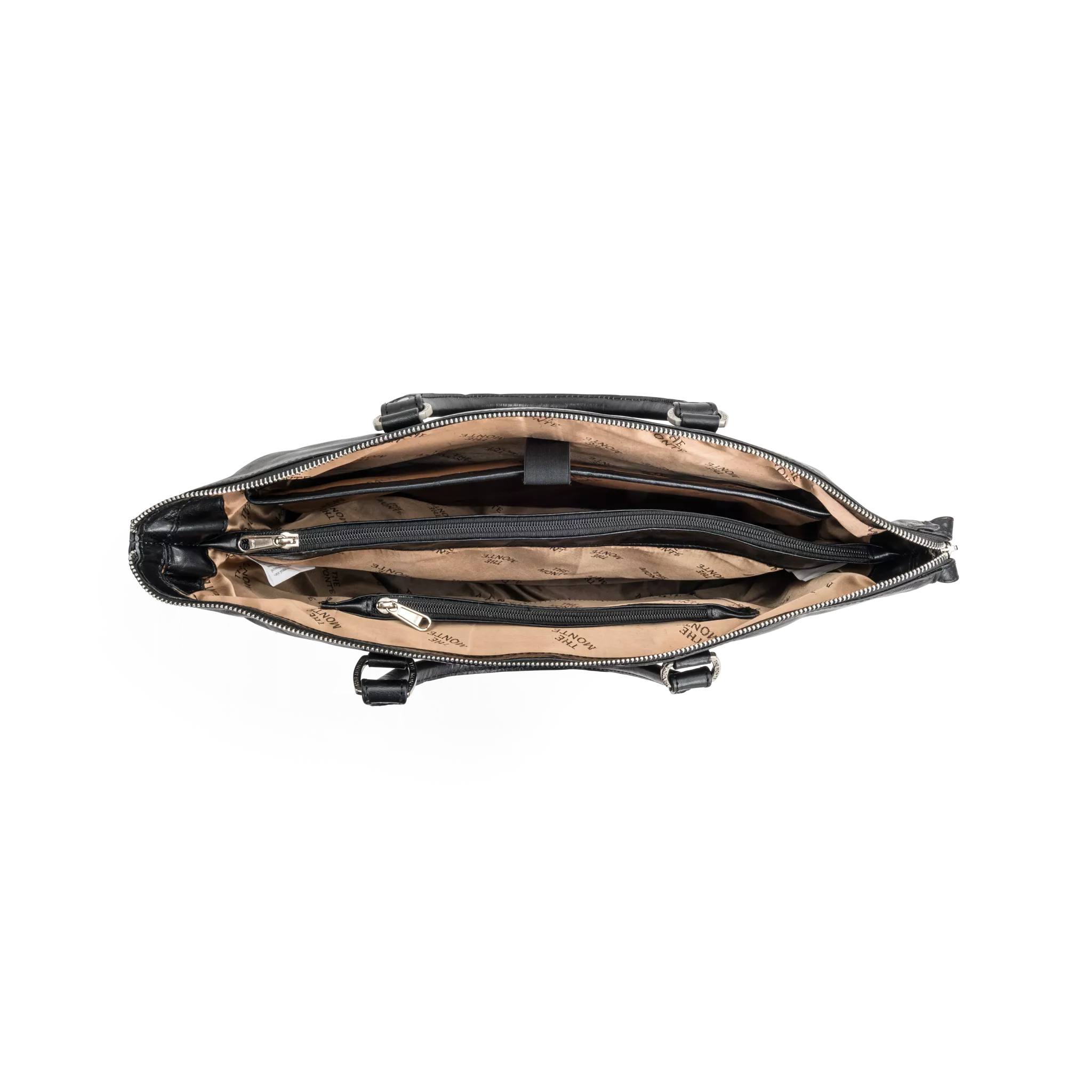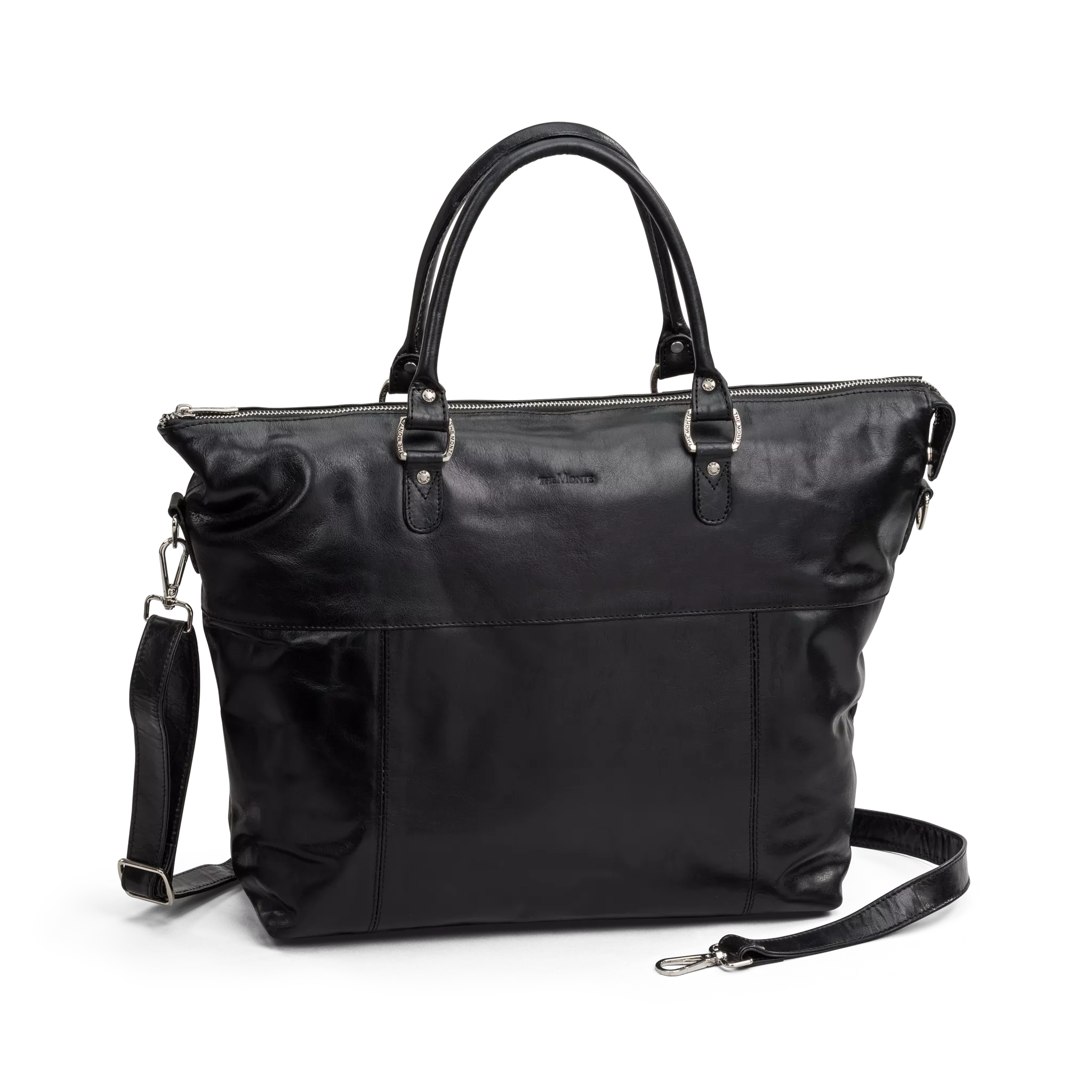 Stilren handväska i skinn – den perfekta workbagen för en aktiv vardag. Snygg, strukturerad och smart – den här handväskan i mjukt buffelkalvskinn från The Monte är designad för att möta arbetsdagens krav utan att kompromissa med stilen. Med plats för en 14,1″ laptop och flera praktiska fack är det den ultimata jobbväskan för dig som vill ha både funktion och elegans.