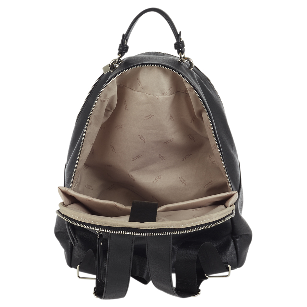 Ulrika Design Noos, Ryggsäck, reglerbar axelremmar, stilfullt ljust innerfoder, Två invändiga fack, Ett fack framsida och baktill med dragkedja. Handtag som enkelt kan bära med sig ryggsäcken, dubbla dragkedjor med separata fack. Nylon shoppingkasse medföljer.